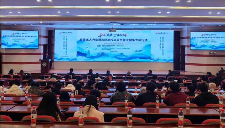 自贡市人社局、学校招生就业处及各学院相关负责人与毕业生参加了本次活动。