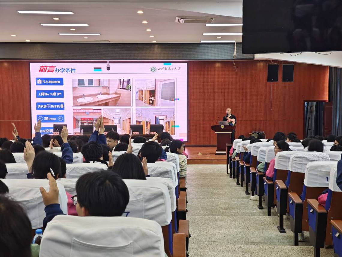 随后,晋良平副书记全面介绍了四川轻化工大学的办学底蕴和发展优势。通过播放招生宣传片、进行PPT展示,直观呈现了学校及学院的师资力量、科研实力和人才培养特色。